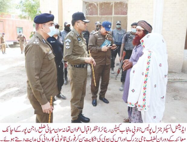 دریں اثناء کیپٹن ریٹائرڈ ظفر اقبال اعوان نے راجن پور کی چوکی دلکشا کا بھی معائنہ کیا اور وہاں حفاظتی اقدامات کا جائزہ لیا جبکہ راجن پور ضلع کے تھانہ سونمیانی کا بھی اچانک معائنہ کیا، اور اس دوران لطیف نامی بزرگ شہری نے اپنی بیوی کے ہمراہ پیش ہو کر شکایت کی کہ اس کے مخالفین نے اسے تشدد کا نشانہ بنایا لیکن پولیس کارروائی سے گریزاں ہے ۔
