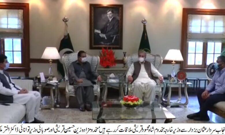 وزیراعلیٰ پنجاب سردار عثمان بزدار سے آج وزیراعلیٰ آفس میں وزیر خارجہ شاہ محمود قریشی نے ملاقات کی، ملاقات میں جنوبی پنجاب سیکرٹریٹ،ترقیاتی منصوبوں اوردیگر امور پر تبادلہ خیال کیا گیا۔