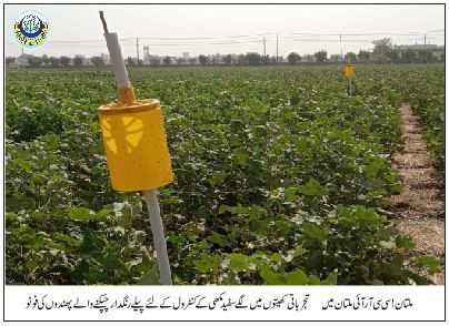 کپاس کی سفید مکھی کی مینجمنٹ کے لئے کے لئے کاشتکار کھیتوں میں کپاس کے کاشتکار پیلے رنگدار چپکنے والے پھندوں کا استعمال کریں، یہ بات ڈائریکٹر سنٹرل کاٹن ریسرچ انسٹیٹیوٹ،ملتان نے کپاس کے کاشتکاروں کے نام اپنے اہم پیغام میں کہا ہے۔
