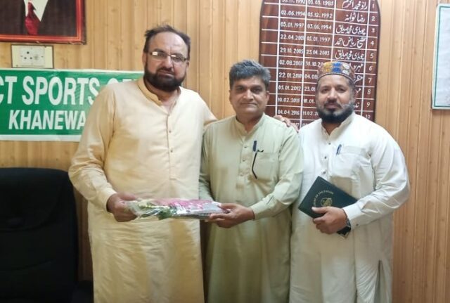 اس موقع پر محمد جمیل کامران سپورٹس آرگنائزر ؤ سابق ڈسٹرکٹ سپورٹس آفیسر ملتان نے شفیق الرحمن خٹک کو خانیوال میں تعیناتی پر مبارکباد دی اور پھولوں کا گلدستہ پیش کیا.
