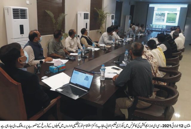 محکمہ تعلیم جنوبی پنجاب کی طرف سے خطے کے تعلیمی اداروں میں کھیلوں کے احیاء اور فروغ کے جامع منصوبے کا آغاز، نان سیلری بجٹ کا دس فیصد کھیلوں کے فروغ کے لئے مختص، کھیل اور دیگر ہم نصابی سرگرمیوں کو فروغ دینے کی کوششیں اور ان کے نتائج کو تعلیمی اداروں کے سربراہان کی سالانہ کارکردگی رپورٹ کا حصہ بنایا جائے گا، منصوبے پر فوری عمل درآمد کے لئے سی ای اوز کانفرنس میں تعلیمی افسران کو ٹاسک دے دیاگیا۔