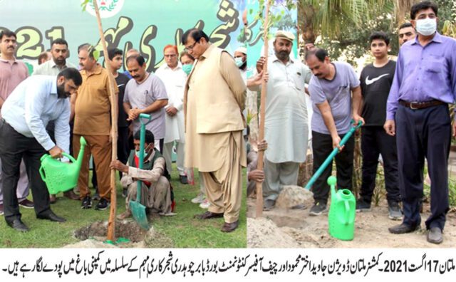 سی او کنٹونمنٹ بورڈ ملتان بابر چودھری نے کہا کہ کنٹونمنٹ بورڈ وزیراعظم کے گرین وژن کی کامیابی کیلئے متحرک ہے۔ڈویژنل انتظامیہ کے تعاون سے پورے کینٹ میں شجرکاری جاری ہے۔گرین پاکستان ڈے پر کینٹ میں 2000 پودے لگائے گئے۔ شجرکاری مہم میں پارک میں سیر کیلئے آئے شہری بھی شریک ہوئے۔