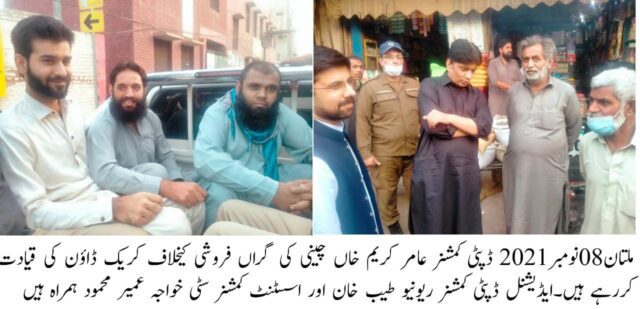 ڈپٹی کمشنر ملتان عامر کریم خاں نے گزشتہ روز شہر کے مختلف علاقوں کا اچانک دورہ کیا ، اور سرکاری نرخوں پر فراہم کی جانے والی چینی کے نرخوں کا معائنہ کیا۔