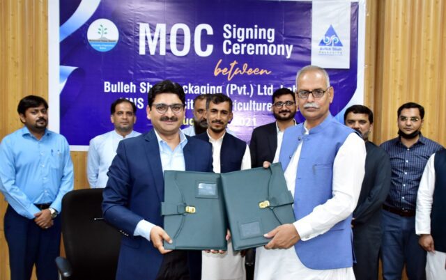 نوازشریف زرعی یونیورسٹی اور بلھے شاہ پیکنگ میں معاہدہ طے پاگیا ، جس کی رو سے دونوں ادارے فصلوں کی پیداوار کےلئے تحقیق اور ٹیکنکی خدمات کےلئے تعاون کریں گے ، جو صنعت کےلئے فیڈ اسٹاک کے طور پر کام آسکتی ہے۔