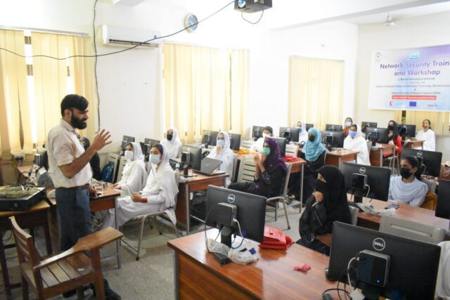 ورکشاپ اور ٹریننگ پاکستان میں منتخب خواتین یونیورسٹیوں میں نیٹ ورک سیکورٹی ٹریننگ ورکشاپ کی پہلی ٹریننگ ہے ، جسے یورپی یونین نے ٹرانس یوریشیا انفارمیشن نیٹ ورک کارپوریشن سینٹر کے ذریعے رابطہ کیا گیا ہے۔