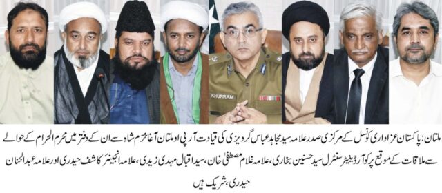 پاکستان عزاداری کونسل کا مرکزی وفد صدر پاکستان عزاداری کونسل سید مجاہد عباس گردیزی کی قیادت میں اب جنوبی پنجاب کے تمام ڈویژن میں ڈی پی اوز کے ساتھ کل سے ملاقاتیں شروع کرے گا۔