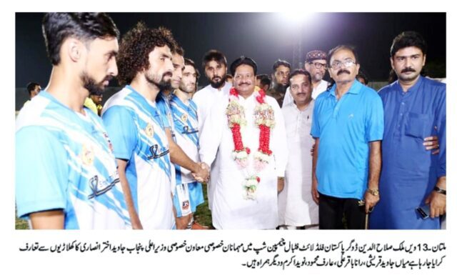 مہمان خصوسی معاون خصوصی وزیر اعلی پنجاب جاوید اختر انصاری تھے، اس موقع پر انہوں نے خطاب کرتے ہوئے کہا کہ کرونا صورتحال میں شہریوں کو صحت مندانہ تفریح فراہم کرنے میں پی ایف ایف اور ڈی ایف اے ملتان کا اقدام قابل تحسین ہے، صحت مندانہ سرگرمیوں اور گراونڈز آباد کرنا وزیراعظم عمران خان اور وزیر اعلی پنجاب عثمان بزدار کا وژن ہے ۔