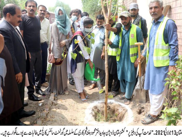 خدمت آپکی دہلیز پر پروگرام کے ہفتہ شجرکاری کے دوسرے روز بھی پی ایچ اے ڈویژنل انتظامیہ شجرکاری میں مصروف رہے۔ کمشنر ملتان ڈویژن جاوید اختر محمود نے طلبہ و طالبات کیساتھ سائنس کالج میں پودے لگائے۔