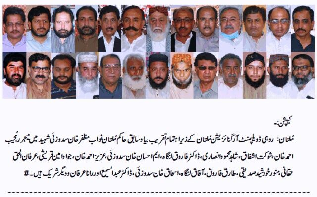 سیاسی و سماجی رہنما میجر (ر) مُجیب احمد خان نے ان خیالات کا اظہار روہی ڈویلپمنٹ آرگنائزیشن مُلتان کے زیر اہتمام 203ویں یوم سقوطِ مُلتان و 14ویں سالانہ تقریب بیاد سابق حاکم مُلتان نواب مظفر خان سدوزئی شہید سے خطاب کرتے ہوئے کیا۔