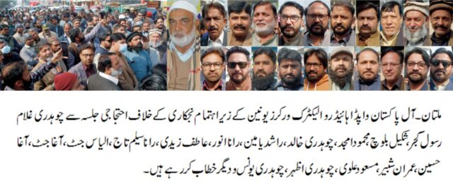 میپکو ہیڈکوارٹر ملتان کے باہر خانیوال روڈ پر زیر قیادت ریجنل چیئرمین چوہدری غلام رسول گجر کے احتجاج ریکارڈ کروایا گیا۔