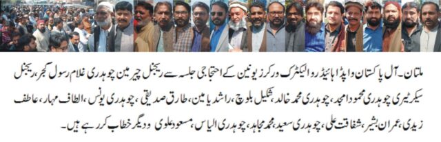 آل پاکستان واپڈا ہائیڈرو الیکٹرک ورکرز یونین کی کال پر ملتان میں احتجاجی مظاہرہ