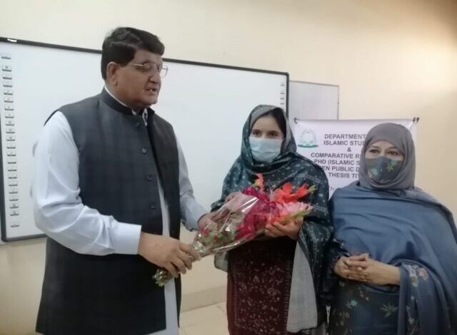 پبلک ڈیفنس میں نامور عالمی سکالر پروفیسر ڈاکٹر محمد ضیاء الحق ڈائریکٹر جنرل ادارہ تحقیقات اسلامی اسلام آباد نے بطور بیرونی ممتحن شرکت کی۔