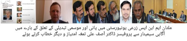 ملتان ایم این ایس زرعی یونیورسٹی میں پانی اور موسمی تبدیلی کے تعلق کے بارے میں آگاہی سیمینار کا انعقاد کیا گیا۔