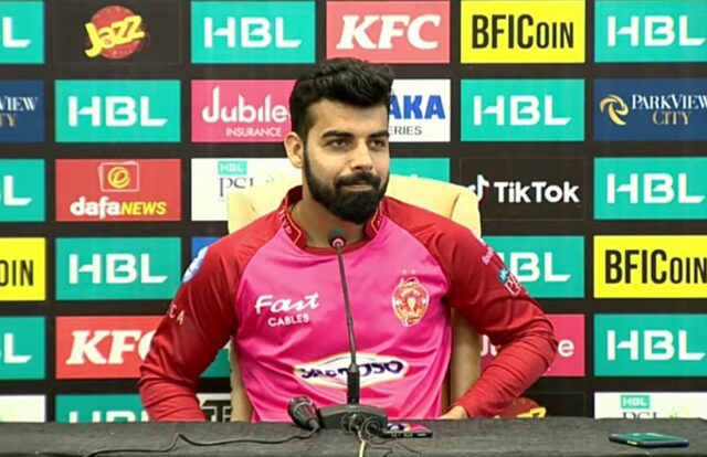 ملتان میں کھیلے جانے والے پی ایس ایل کے ساتویں میچ میں شکست کے بعد پریس کانفرنس کرتے ہوئے شاداب نے قہقہے لگوادیئے، اہلیہ کے حوالہ سے بھی جواب دئیے۔