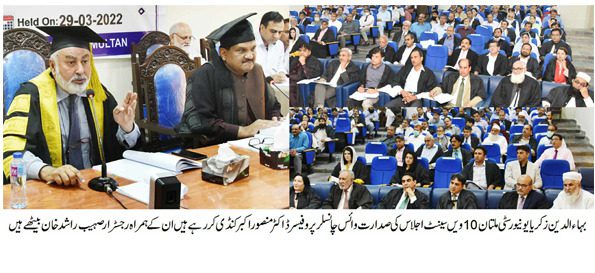 بہاؤالدین زکریا یونیورسٹی ملتان کی اعلٰی ترین اختیاراتی کمیٹی سینٹ کا 10واں اجلاس گزشتہ روز وائس چانسلر پروفیسر ڈاکٹر منصور اکبر کنڈی کی زیر صدارت دن 11 بجے شروع ہوا۔