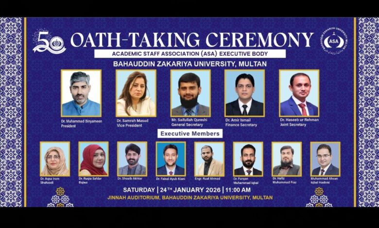 اکیڈمک اسٹاف ایسوسی ایشن زکریا یونیورسٹی کی حلف برداری تقریب آج 24 جنوری کو منعقد ہوگی۔