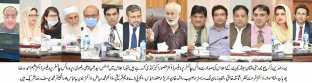 بہاء الدین زکریایونیورسٹی ملتان کی سنڈیکیٹ کااجلاس زیرصدارت وائس چانسلر پروفیسر ڈاکٹر منصور اکبر کنڈی منعقد ہوا۔