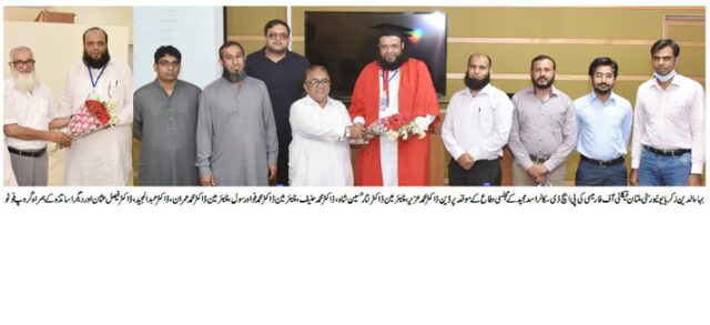 بہاء الدین زکریایونیورسٹی ملتان فیکلٹی آف فارمیسی کے شعبہ فارماسیوٹیکس کے پی ایچ ڈی سکالر اسد مجیدنے اپنے مقالے کا مجلسی دفاع کیا ۔
