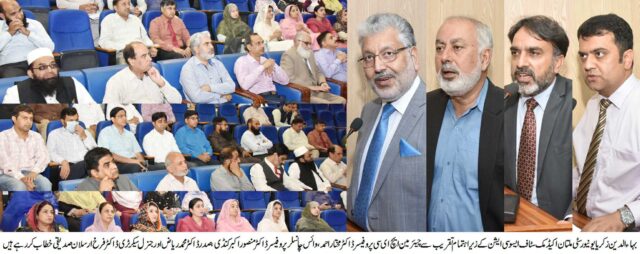 جنرل سیکرٹری اکیڈمک اسٹاف ایسوسی ایشن ڈاکٹر فرخ ارسلان صدیقی نے خطاب کرتے ہوئے کہا کہ چیئرمین ایچ ای سی کی جانب سے مختلف شعبہ جات کے محققین کا کنسورشیم بنانے کا فیصلہ خوش آئند ہے جس سے تحقیق اور عمل کا خلاء پر ہوگا۔