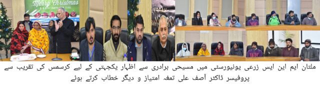 ایم این ایس زرعی یونیورسٹی میں مسیحی برادری سے اظہار یکجہتی کے لئے کر سمس کی مناسبت سے تقریب کا انعقاد کیا گیا۔