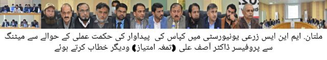 ایم این ایس زرعی یونیورسٹی میں کپاس کی پیداوار کی حکمت عملی کے حوالے سے میٹنگ کا انعقاد کیا گیا۔