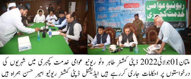 ڈپٹی کمشنر ملتان طاہر وٹو نے حکومت پنجاب کی ہدایت پر عوامی مسائل کی ایک چھت تلے شنوائی کیلئے ریونیو عوامی خدمت کچہری کا انعقاد کیا۔