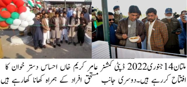 ڈپٹی کمشنر ملتان عامر کریم خاں نے غریب عوام کا احساس کرتے ہوئے احساس بازار کے بعد جنرل بس سٹینڈ پر بلامعاوضہ احساس دستر خواں قائم کردیا ہے۔