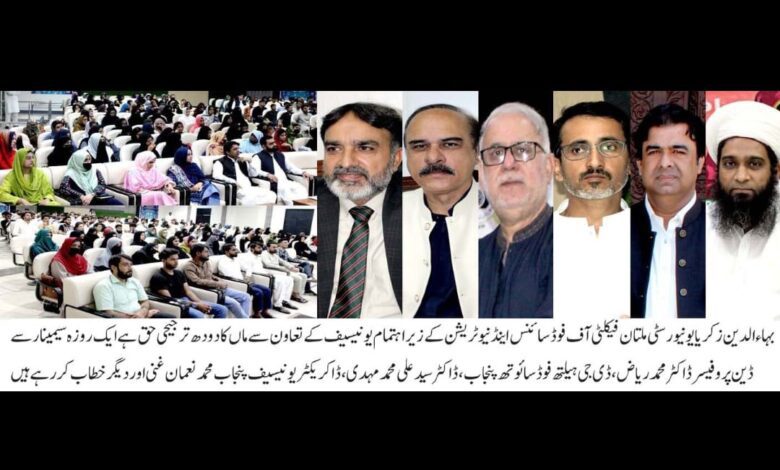 زکریا یونیورسٹی: فیکلٹی آف فوڈ سائنس اینڈ نیوٹریشن کے زیر اہتمام "ماں کا دودھ ترجیحی حق ہے” کے موضوع پر ایک روزہ سیمینار کا انعقاد