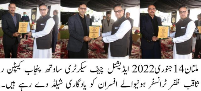 ایڈیشنل چیف سیکرٹری ساوتھ پنجاب کیپٹن ر ثاقب ظفر نے تقریب سے اپنے خطاب میں ٹرانسفر ہونیوالے افسران کی خدمات کو خراج تحسین کیا، اور کہا جنوبی پنجاب سیکرٹریٹ کو نئی بنیادوں پر استوار کرنے میں ٹرانسفر ہونیوالے سیکرٹریز کا اہم کردار ہے۔