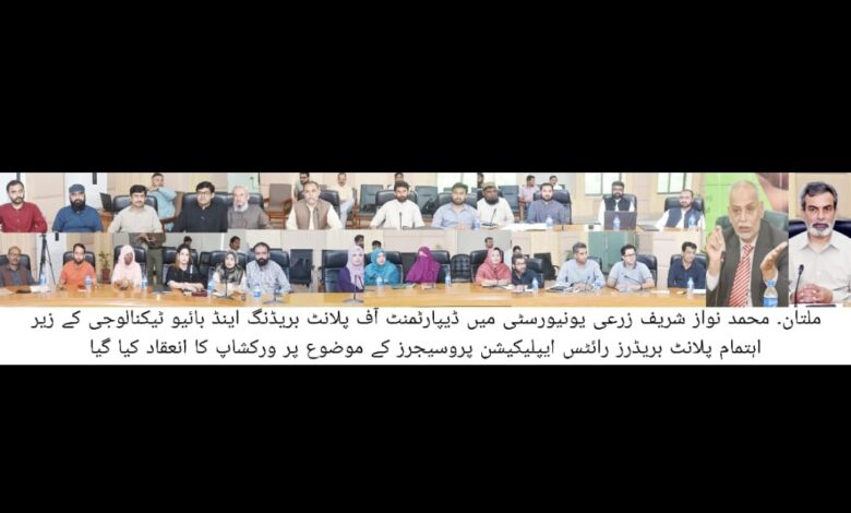 محمد نواز شریف زرعی یونیورسٹی میں انسٹی ٹیوٹ آف پلانٹ بریڈنگ اینڈ بائیو ٹیکنالوجی کے زیر اہتمام "پلانٹ بریڈرز رائٹس ایپلیکیشن پروسیجرز” کے موضوع پر ہینڈز آن ٹریننگ سیشن کا انعقاد کیا، جس میں محمد اویس ڈپٹی ڈائریکٹر، پلانٹ بریڈنگ رجسٹری اور ڈاکٹر محمد شفیق، ایگزامینر پلانٹ بریڈرز رائٹس رجسٹری، نے بطور ریسورس پرسن شرکت کی۔