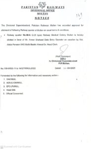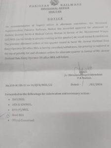 ریلوے ملتان میں الاٹمنٹ کے نام پر افسروں کی لوٹ مار