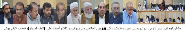 ایم این ایس زرعی یونیورسٹی میں سنڈیکیٹ کا 34 واں اجلاس منعقد ہوا ۔