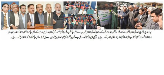 بہاالدین زکریا یونیورسٹی ملتان میں انسٹیٹیوٹ آف فوڈ سائنس اینڈ نیوٹریشن کے نئے بلاک کا افتتاح کیا گیا۔