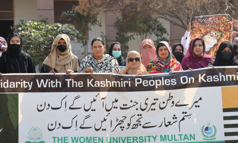 دی ویمن یونیورسٹی میں یوم استحصال کشمیر کے سلسلے میں واک اور تقریب کا انعقاد
