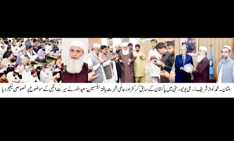 محمد نواز شریف زرعی یونیورسٹی میں پاکستان کے سابق کرکٹر اور عالمی شہرت یافتہ بیٹسمین سعید انور نے دین اسلام پر عمل کرتے ہوے دنیا اور آخرت میں کامیاب ہونے کے حوالے سے خصوصی لیکچر دیا۔