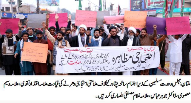 مجلس وحدت مسلمین جنوبی پنجاب کے زیراہتمام پشاور کی امامیہ مسجد میں ہونے والی دہشت گردی کے خلاف چاروں صوبوں سمیت آزاد کشمیر اور گلگت بلتستان میں احتجاجی مظاہرے کیے گئے، مظاہروں میں بڑی تعداد میں خواتین، بزرگ، بچے شریک ہوئے۔