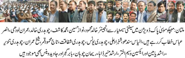 ان خیالات کا اظہار انہوں نے موسیٰ پاک ڈویژنل کمپلیکس میں منعقدہ سیفٹی سیمینار سے خطاب کرتے ہوئے کیا ۔