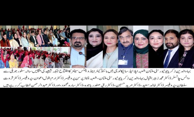 زکریا یونیورسٹی ملتان کے شعبۂ اپلائیڈ سائیکالوجی نے مائنڈ کیئر اینڈ ویلنَس سینٹر کے افتتاح اور پچیس سالہ سلور جوبلی کی تقریبات شروع ہوگئیں۔