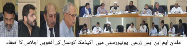 ایم این ایس زرعی یونیورسٹی میں وائس چانسلر پروفیسر ڈاکٹر آصف علی (تمغہ امتیاز) کی زیرصدارت اکیڈمک کونسل کا آٹھواں اجلاس سنڈیکیٹ ہال ایڈمن بلاک میں منعقد کیا گیا۔