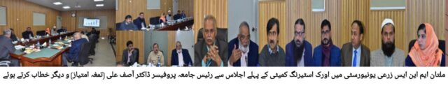 ایم این ایس زرعی یونیورسٹی ملتان میں اورک سٹیرنگ کمیٹی کا پہلا اجلاس رئیس جامعہ پروفیسر ڈاکٹر آصف علی (تمغہ امتیاز) کی زیر صدارت منعقد ہوا۔