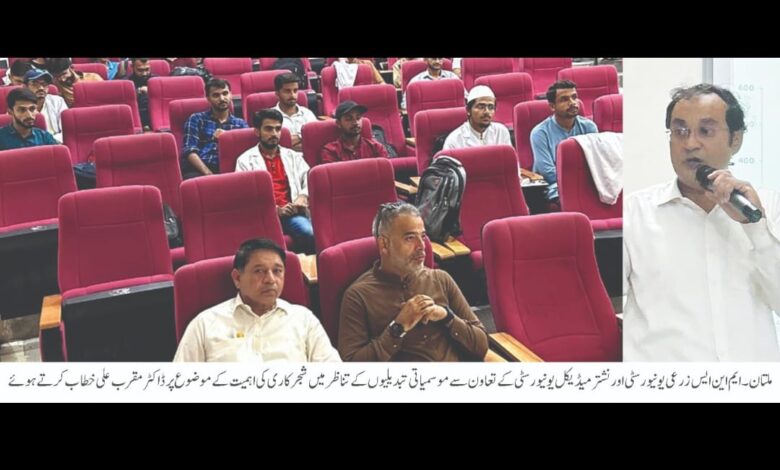 ایم این ایس زرعی یونیورسٹی اور نشتر میڈیکل یونیورسٹی کے تعاون سے موسمیاتی تبدیلیوں کے تناظر میں شجر کاری کی اہمیت پر آگاہی سیمینار کا انعقاد کیا گیا۔