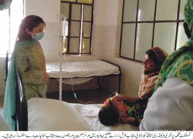 سیکریٹری محکمہ پرائمری وسیکنڈری ہیلتھ کئیر جنوبی پنجاب تنویر اقبال تبسم کی ہدایات مختلف اضلاع کے اسپتالوں اور مراکز صحت پر سروس ڈیلیوری کی مانیٹرنگ کے لیے محکمہ پرائمری و سیکنڈری ہیلتھ کئیر جنوبی پنجاب کے افسران کے دورے، افسران نے فراہم کی جانیوالی والی طبی سہولیات اور دیگر امور کا جائزہ لیا۔