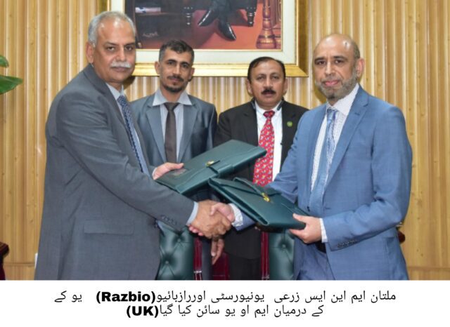 ملتان ایم این ایس زرعی یونیورسٹی اور رازںبائیو یو کے کے درمیان ایم او یو سائن کیا گیا۔
