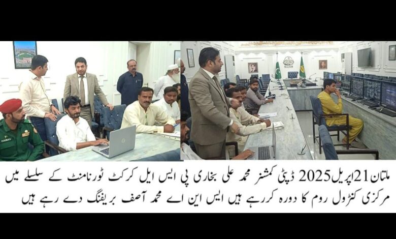 ڈپٹی کمشنر محمد علی بخاری نے گزشتہ روز مرکزی کنٹرول روم کا دورہ کیا۔ڈپٹی کمشنر نے کرکٹ ٹیموں کے روٹس اور سیکورٹی انتظامات پر بریفننگ لی۔