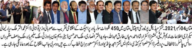 اس موقع پر پارلیمانی سیکرٹری اطلاعات ندیم قریشی،کمشنر ڈاکٹرارشاداحمد،ایم پی اے میاں طارق عبداللہ،معاون خصوصی جاویداخترانصاری،ایم این اے ملک احمدحسن ڈیہڑ،وسیم خان بادوزئی،ملک سلیم بابر،ملک واصف مظہرراں،وائس چانسلر رانا الطاف، پروفیسرڈاکٹر منصور اکبرکنڈی ،ایم ایس نشتر امجد چانڈیو اور ڈاکٹر مسعود ہراج اقبال عاربی ،ملک عبد الرووف، ملک راشدسمیت دیگر موجود تھے ۔