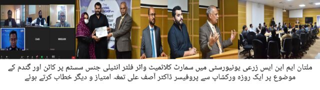 ایم این ایس زرعی یونیورسٹی میں سمارٹ کلائمیٹ واٹر اور فرٹیلائزر انٹیلی جنس سسٹم فار کاٹن اور گندم کے موضوع پر ایک روزہ ورکشاپ کا انعقاد کیا گیا ۔