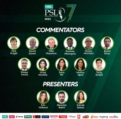 غیرملکی ستاروں کے علاوہ پاکستان کے سابق کرکٹرز اور ممتاز کمنٹیٹرز بھی نیشنل اسٹیڈیم کراچی اور قذافی اسٹیڈیم لاہور میں جاری لائیو ایکشن پر تبصرہ کرنے کے لیے کمنٹری باکس کا حصہ ہوں گے۔