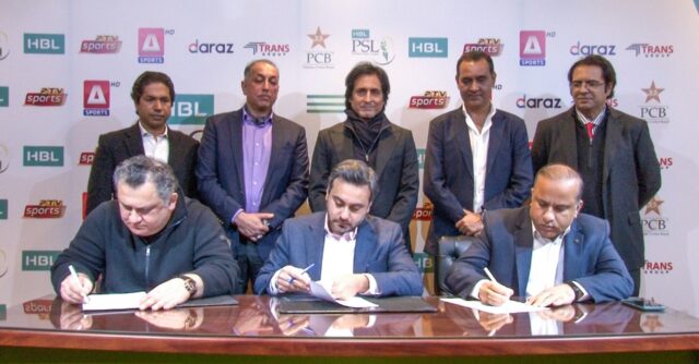 پاکستان کرکٹ بورڈ نے پی ٹی وی اور اے آروائی کے کنسوریشم سے تاریخی معاہدہ کرلیا، جس کے بعد شائقین پی ایس ایل سیزن سیون پی ٹی وی اور اے اسپورٹس پر براہ راست دیکھ سکیں گے۔
