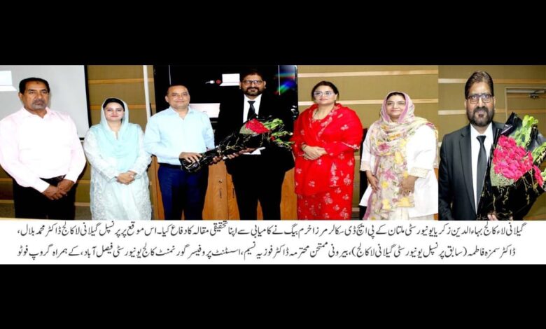 یونیورسٹی گیلانی لاء کالج، بی زی یو ملتان میں پرنسپل ڈاکٹر محمد بلال کی زیر صدارت پی ایچ ڈی ڈیفنس کا انعقاد کیا گیا، جس میں ڈاکٹر سمزہ فاطمہ (سابق پرنسپل، یونیورسٹی گیلانی لاء کالج) کے پی ایچ ڈی اسکالر مرزا خرم بیگ نے کامیابی سے اپنا تحقیقی مقالہ (تھیسس) کا دفاع کیا۔