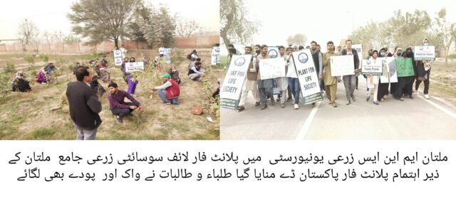ملتان ایم این ایس زرعی یونیورسٹی میں پلانٹ فار لائف سوسائٹی زرعی جامع ملتان کے ذیر اہتمام پلانٹ فار پاکستان ڈے منایا گیا۔